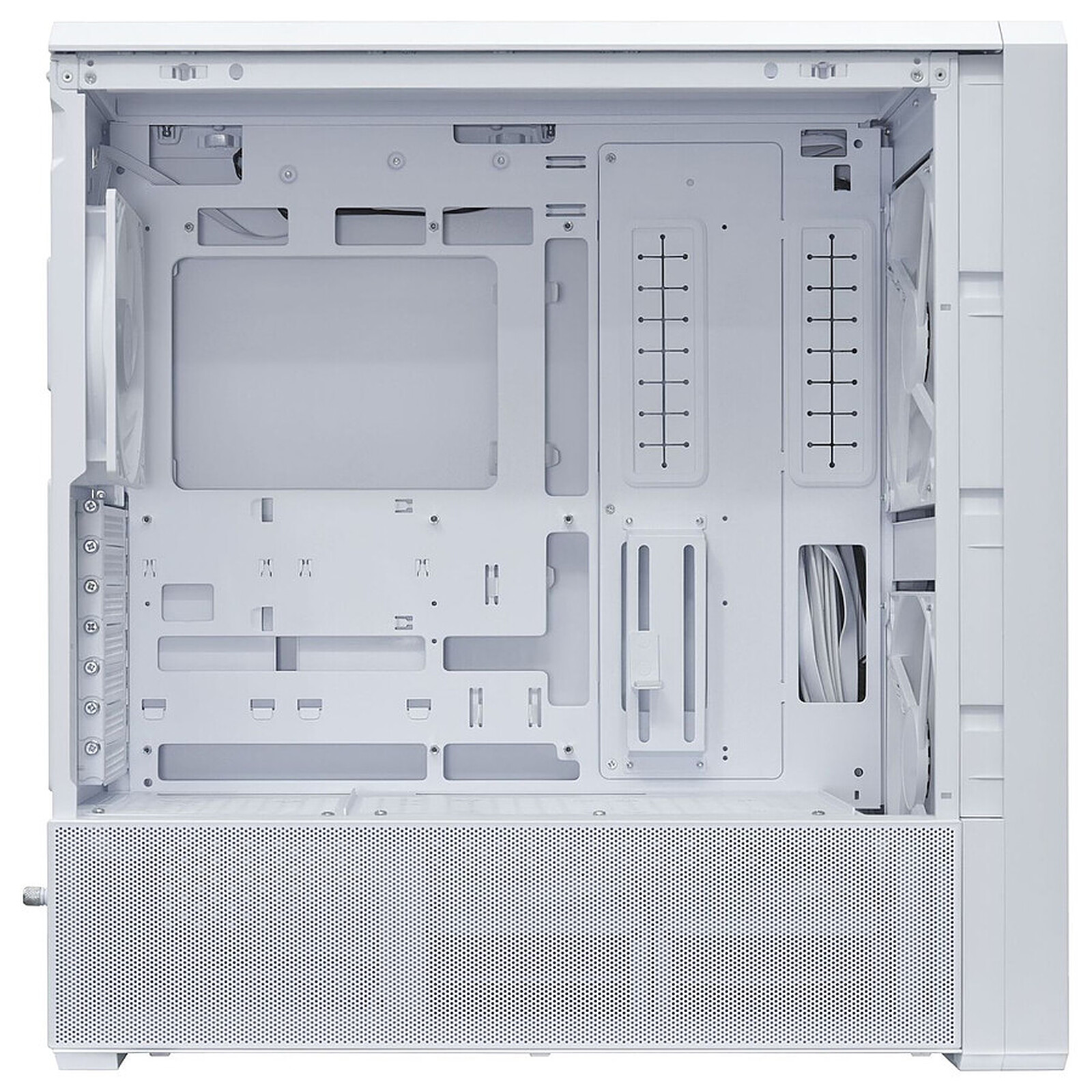 Façade : 2× 170 mm (2 ventilateurs inclus) Dessus : 3× 120 mm ou 2× 140 mm Bas : 3× 120 mm (au-dessus baie PSU) / 2× 120 mm (dans baie PSU) Arrière : 1× 120/140 mm (1 ventilateur 140 mm inclus) |