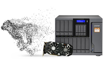 Installez une carte graphique pour des calculs accélérés par le GPULes cartes graphiques sont optimisées pour les transformations et calculs graphiques. Le TS-1677X délivre une alimentation de 550 watts pour assurer la compatibilité avec les cartes graphiques haut de gamme qui peuvent grandement renforcer les applications dont l'apprentissage automatique IA utilisant énormément de données, le traitement d'images et les performances des machines virtuelles (via le passthrough GPU). Lorsque vous regardez des vidéos avec le TS-1677X, vous pouvez utiliser la télécommande ( RM-IR004, en option) qui prend en charge QButton pour un contrôle plus pratique de votre expérience multimédia. |