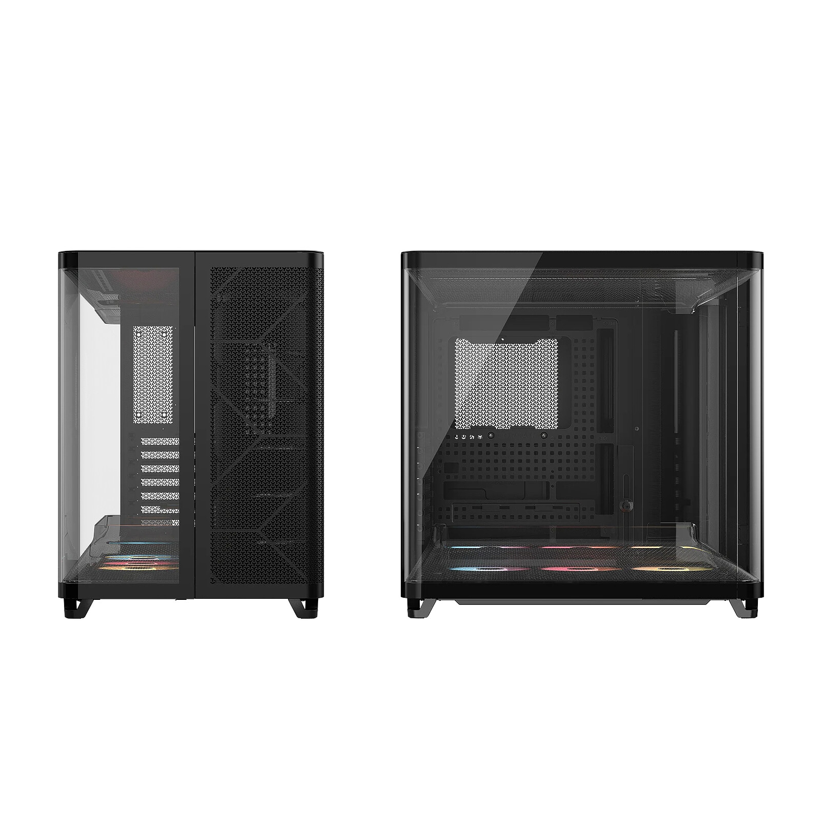 Son intérieur généreux a été pensé pour les GPU les plus exigeants, offrant un espace optimal pour respirer et deux conduits d’aération qui canalisent l’air frais au cœur du GPU afin d’en libérer tout le potentiel.