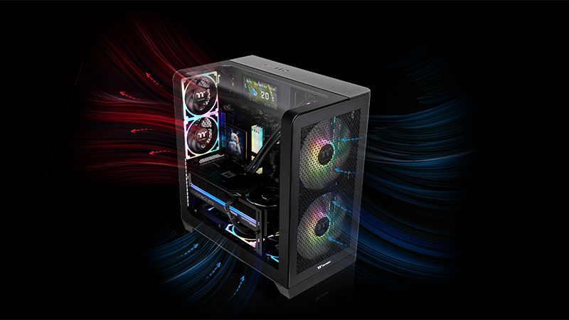 Grâce au panneau avant en mesh et aux deux ventilateurs arrière CT120 (fournis), ce boîtier View 390 Air dispose d'entrées d'air et d'évacuations suffisamment bien conçues pour maintenir la température interne basse, en permanence.