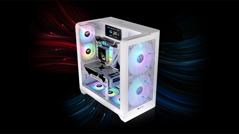 Grâce au panneau avant en mesh et aux deux ventilateurs arrière CT120 (fournis), ce boîtier View 390 Air dispose d'entrées d'air et d'évacuations suffisamment bien conçues pour maintenir la température interne basse, en permanence.