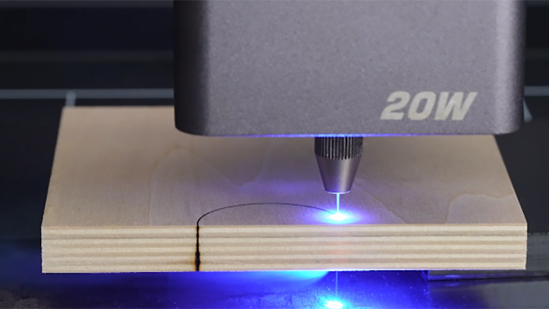 Grâce au laser bleu 20W créez comme un pro. Profitez d'une découpe de 10 mm avec le bois de tilleul, de 8 mm avec l'acrylique noir et de 0,04 mm avec la tôle inox. Tout cela avec une vitesse pouvant atteindre 600 mm/s.