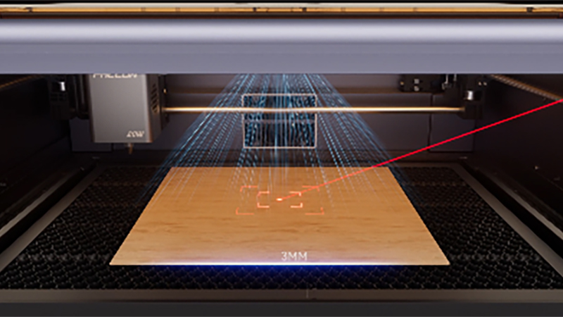 Grâce à la caméra vue de dessus avec vision HD prévisualisez toute la zone, visualisez et positionnez vos objets avec précision pour des découpes et gravures exactes.