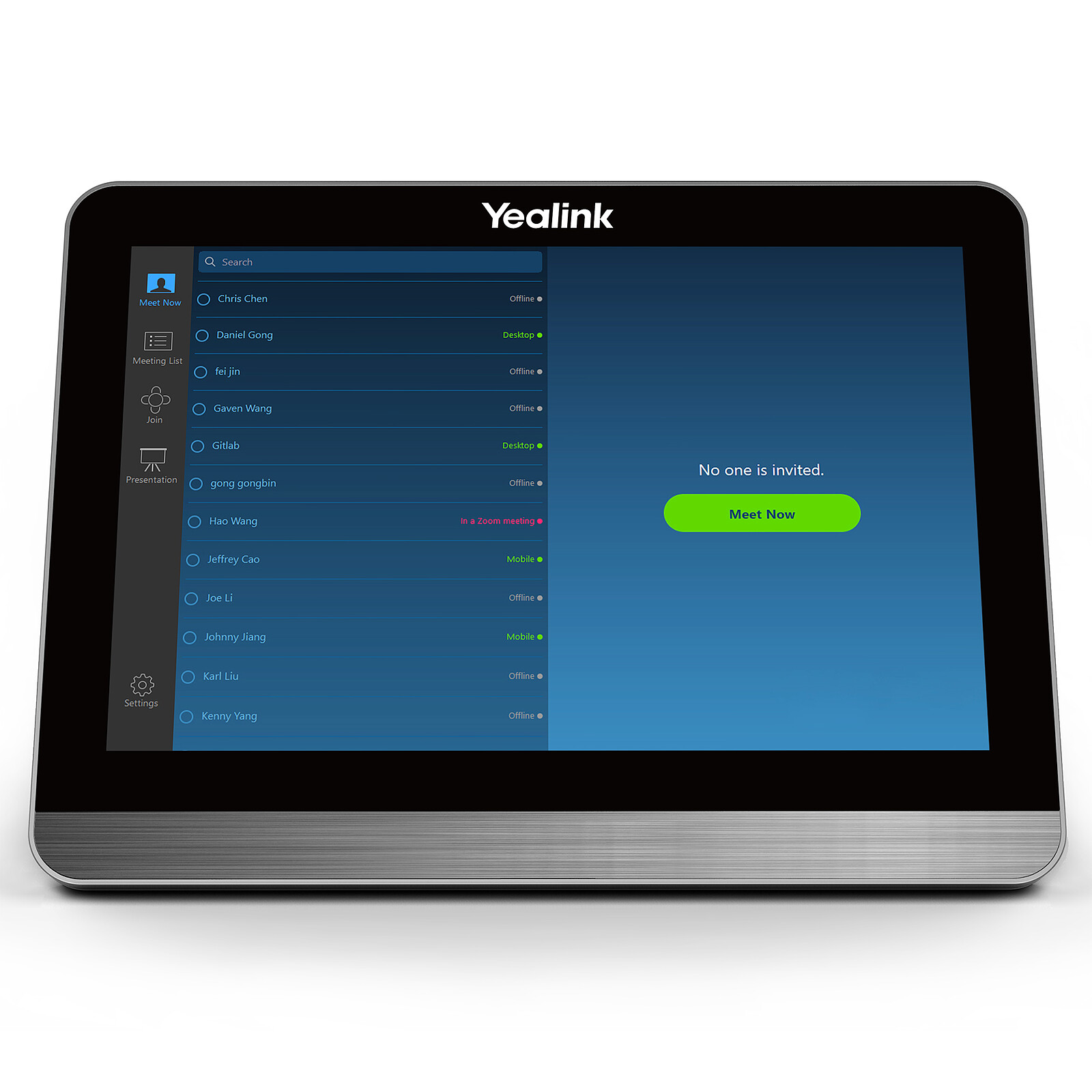 Avec le Yealink CTP18, l’ensemble des contrôles de réunion est à portée de main : d’un simple toucher ou glissement, vous pouvez démarrer ou rejoindre une réunion, prévisualiser et ajuster la caméra, changer la disposition des participants, ou lancer l’enregistrement, tout cela sans effort et sans complexité.