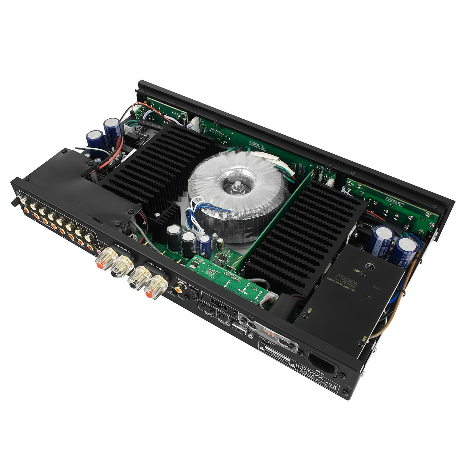 Amplificateur stéréo 2 x 45 W - Convertisseur DAC Wolfson 192 kHz/24 bits - 5 entrées analogiques - 2 entrées numériques - Sortie subwoofer - Casque 6.35 mm