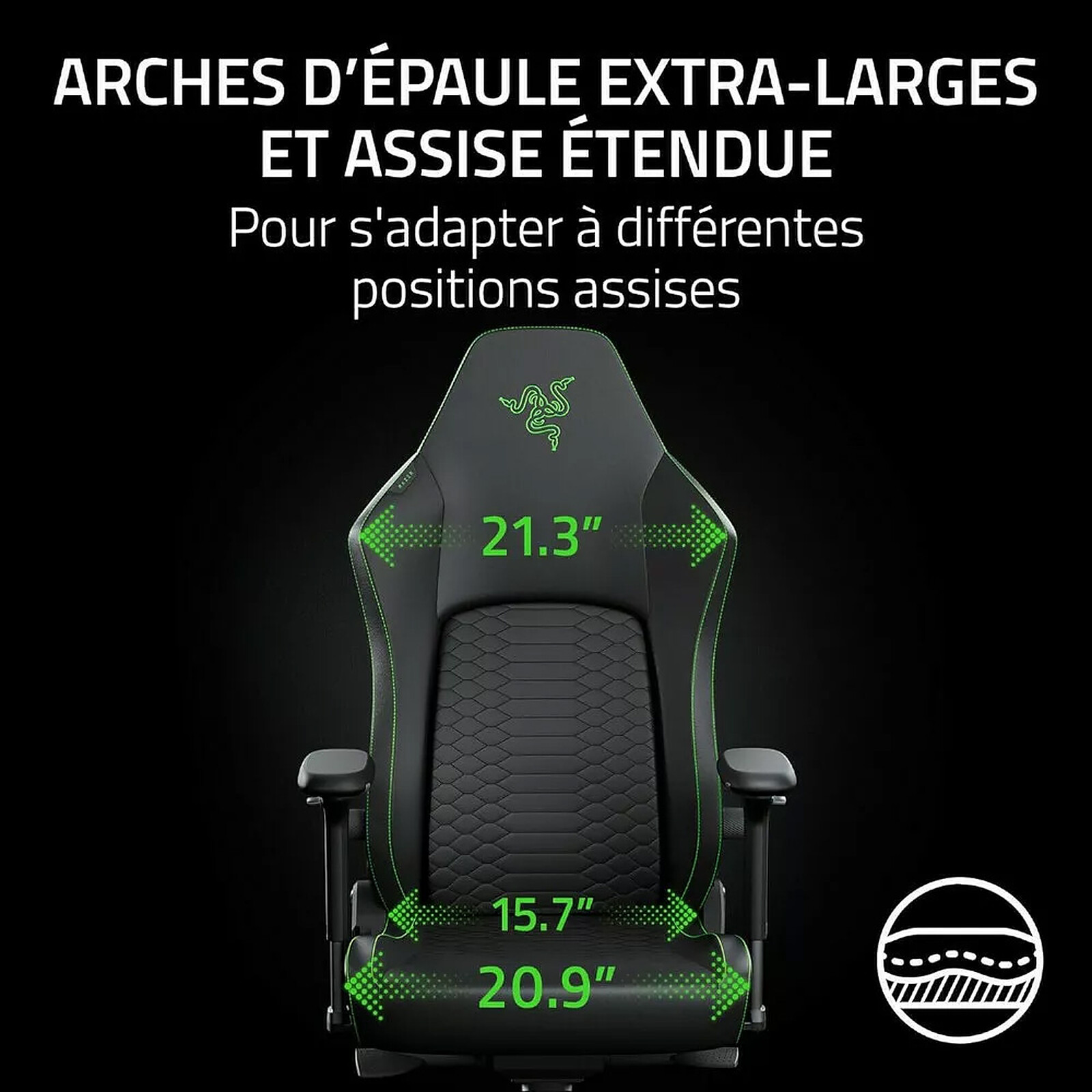Siège pour gamer - cuir en EPU 2ème Gen - soutien lombaire Razer HyperFlex - accoudoirs 4D - jusqu'à 136 kg