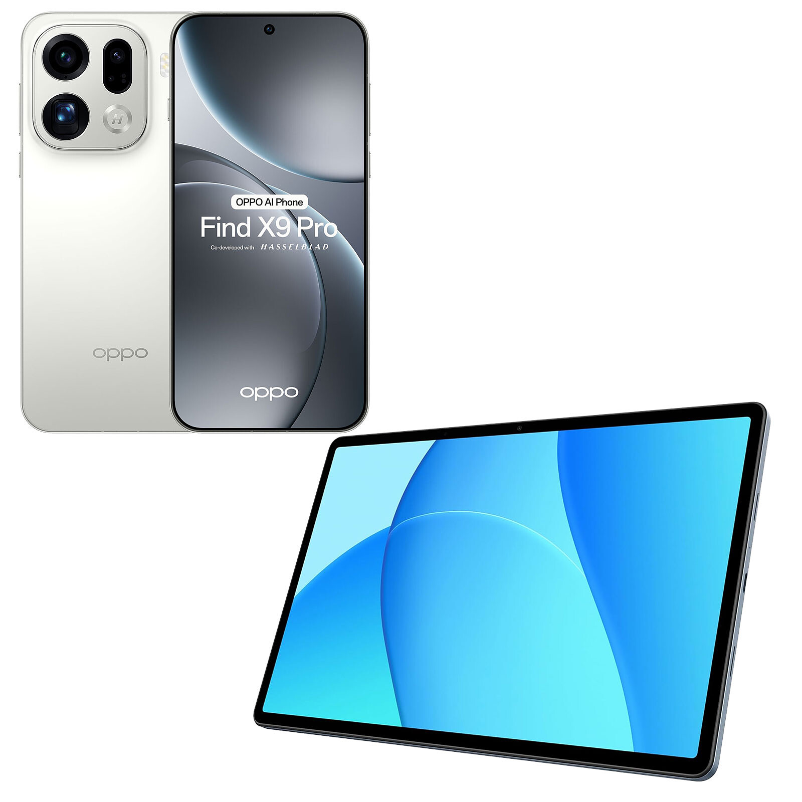 OPPO Find X9 Pro Blanc Soie (16 Go / 512 Go) + OPPO Pad SE Bleu Crépuscule (4 Go / 128 Go) OFFERTE !