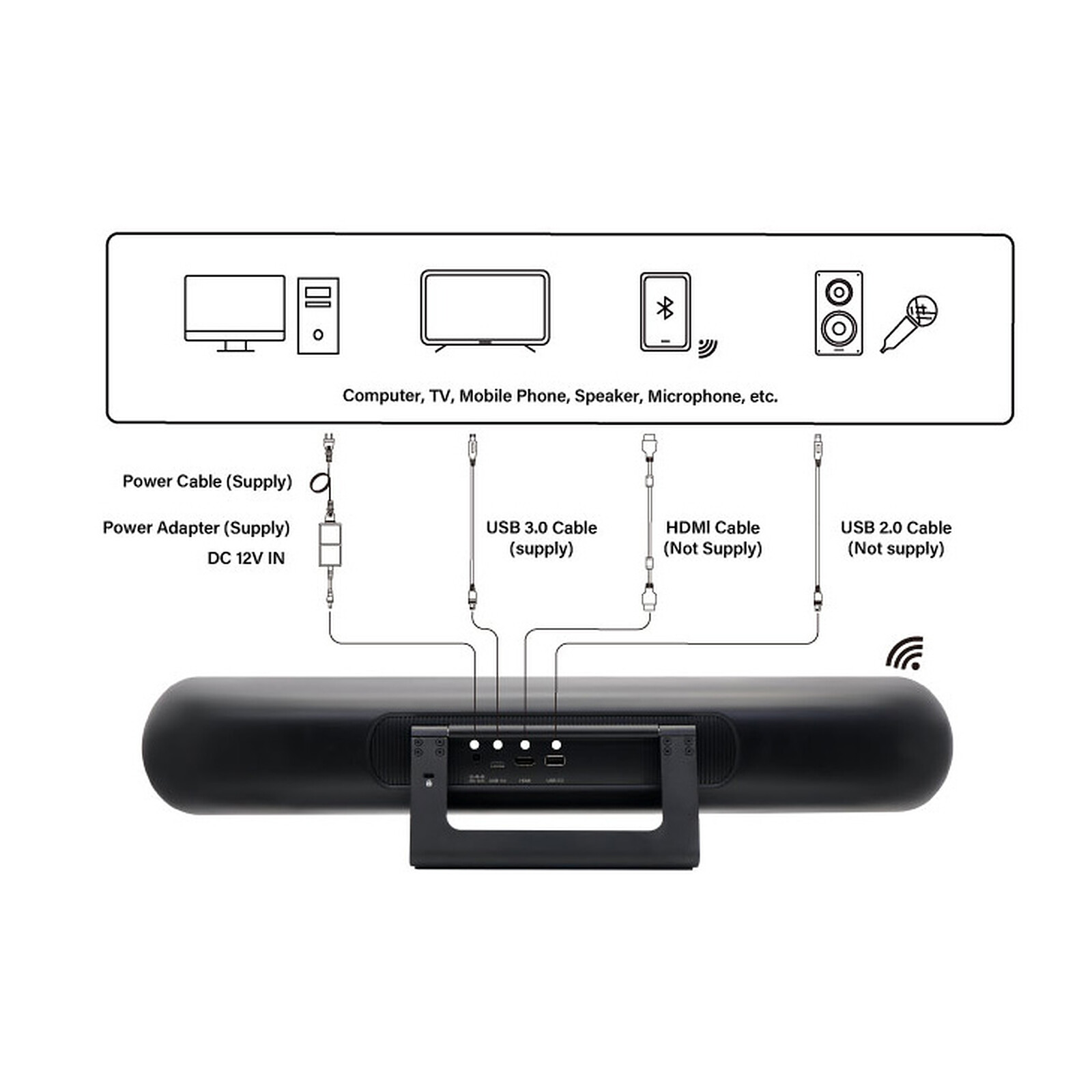 Barre A/V de visioconférence - 4K UHD - 120° - Zoom 5x - Microphone - Haut-parleur - Bluetooth - HDMI - USB-C/A