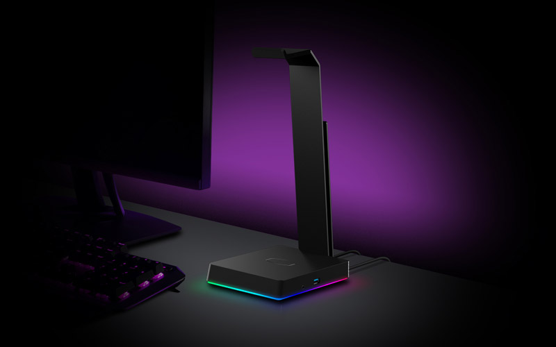 Il supporto per cuffie Cooler Master GS750 è il modo perfetto per tenere le tue cuffie al loro posto quando non le stai usando e spinge il limite con una serie di caratteristiche utili per darti più di un semplice supporto standard per cuffie. Nel menu c'è un caricatore a induzione Qi (wireless) fino a 10W, un sistema LED RGB personalizzabile via software, suono surround 7.1 integrato e un hub USB 3.0 a due porte.