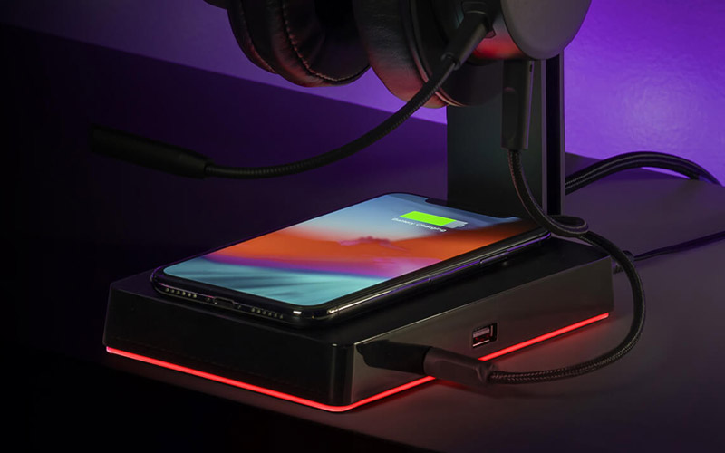 Supporto per cuffie con LED RGB integrati - suono surround 7.1 - hub USB - caricatore Qi