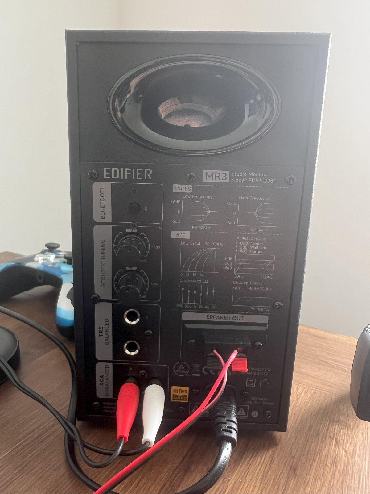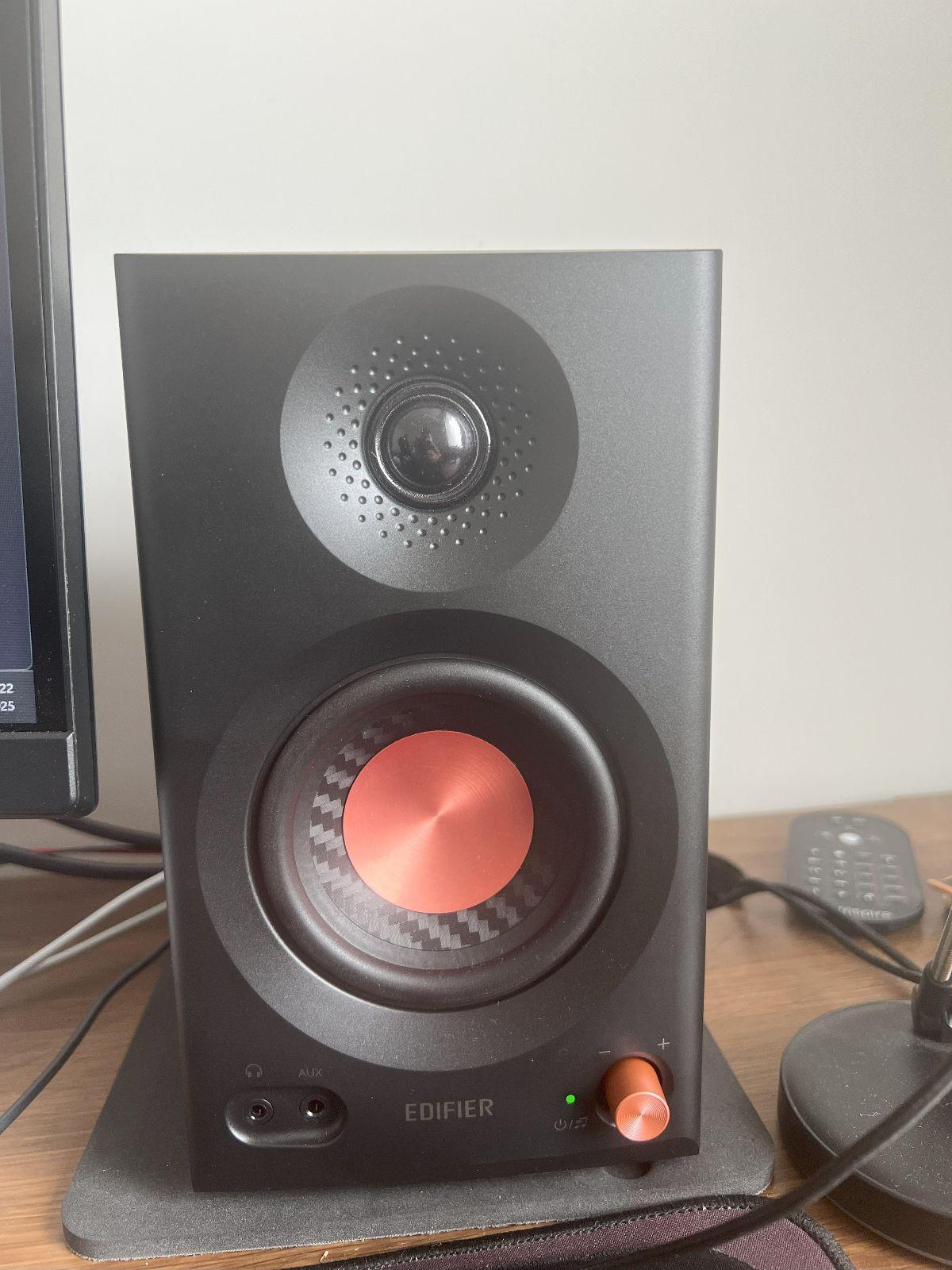 Volevo acquistare dei diffusori un po' più belli dei miei precedenti, i Peeble Pro di Creative, che sono molto pratici e compatti. Da un po' di tempo tengo d'occhio la gamma Edifier e le recensioni sono in genere positive, con un ottimo rapporto qualità/prezzo. La mia scelta è caduta su questi MR3 per questa configurazione secondaria.