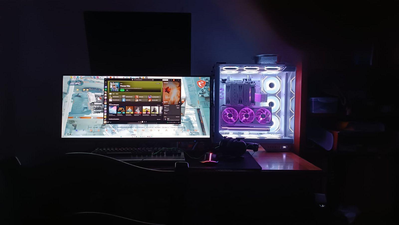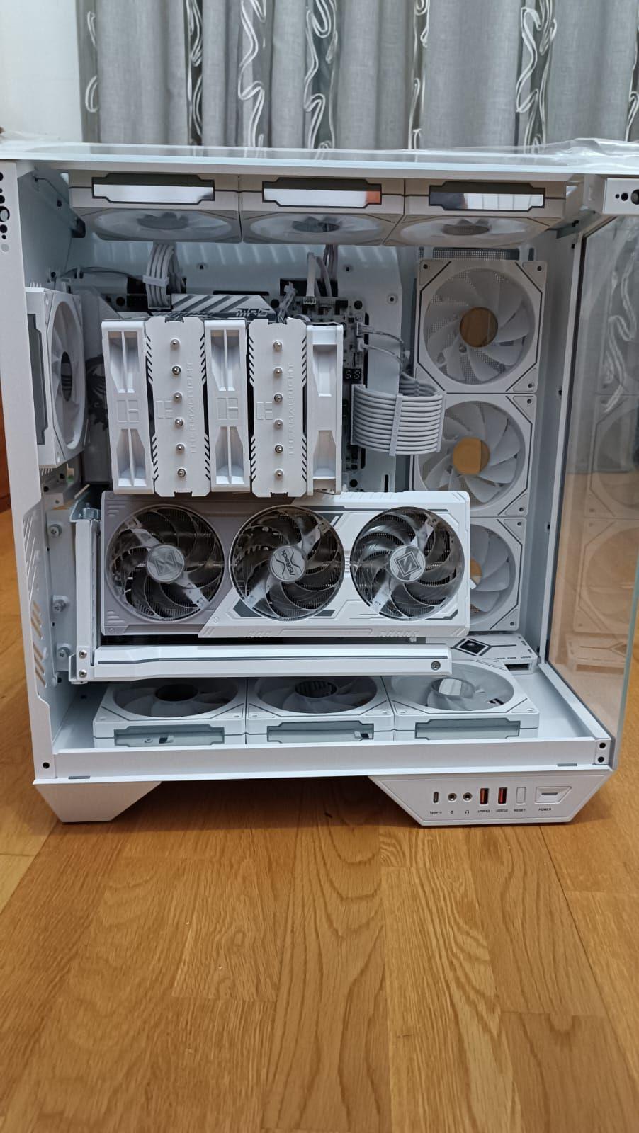 Si possono montare fino a 10 ventole sul case e altre sul dissipatore. Supporta anche radiatori fino a 360mm in configurazione push-pull sul lato destro, sopra e sotto invece push o pull con ventole spesse . Lo adoro così com’è, ma sto pensando di aggiungere un pannello in plexiglass per coprire i cavi della scheda madre e fare delle modifiche ampliandolo verso l'alto e aumentando l'angolo del vetro frontale con una struttura aggiuntiva dato che voglio inserire un monitor.. Buona qualità generale, anche se avrei aggiunto coperture per i fori passacavo e rinforzato pci. La build non è ancora completa, ma questo è ciò che è venuto fuori per ora. Nonostante ciò, è già ordinato e ben organizzato, anche se un po’ più spazio dietro alle ventole laterali per i cavi sarebbe stato ottimo.