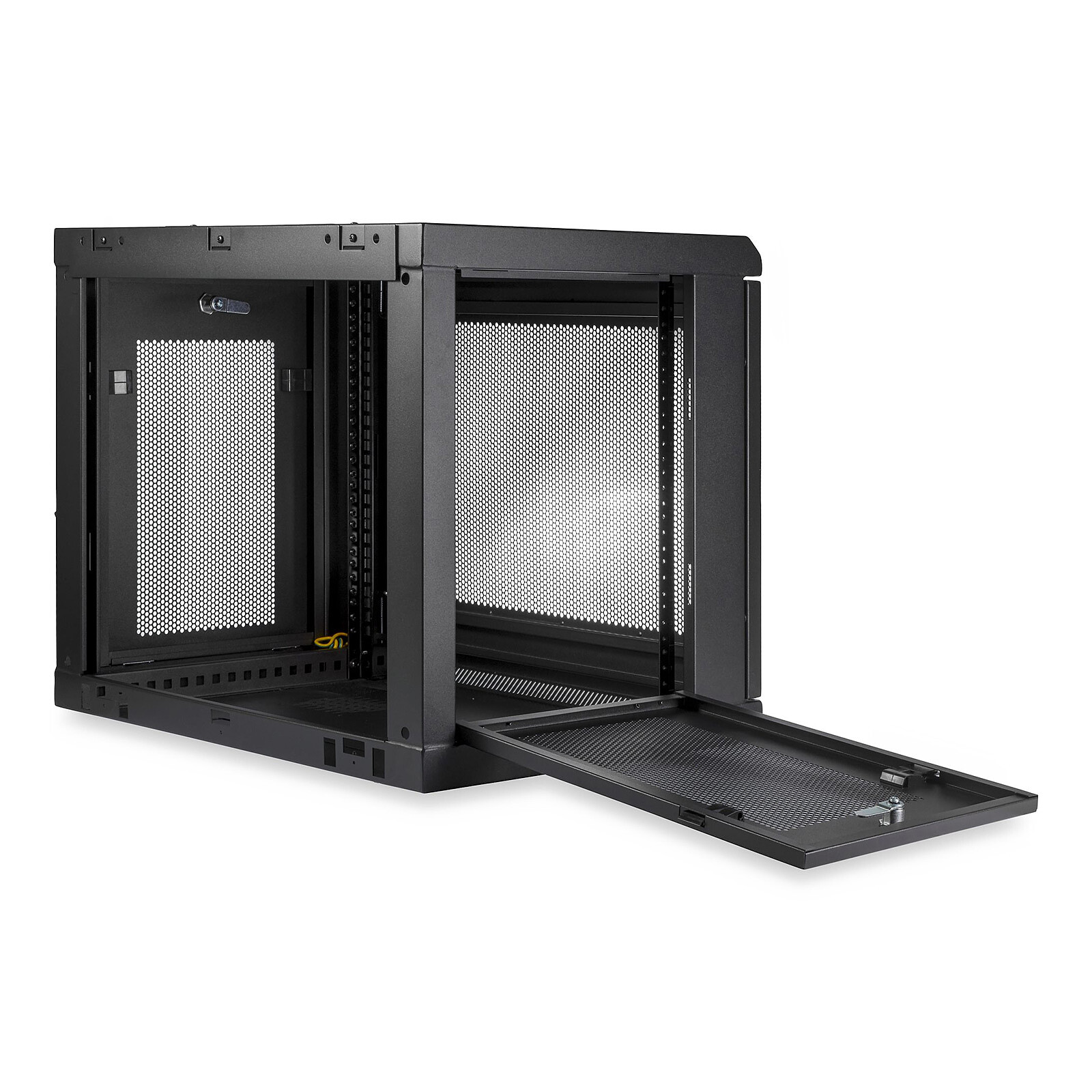 Il design a parete rende questo armadio la soluzione ideale per ottimizzare lo stoccaggio delle apparecchiature in classe, in negozio, nella sala server o in ufficio. Il rack include anche un ripiano 1U che fornisce una superficie stabile per riporre gli strumenti o le apparecchiature non montabili su rack.
