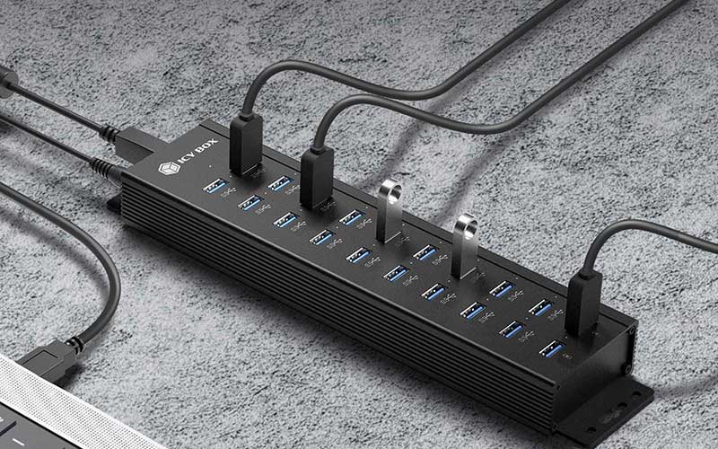 Con le sue diciotto porte USB di tipo A, l'hub ICY BOX IB-HUB1720-U3 è specializzato nella gestione di trasferimenti di dati multipli. Ogni porta supporta trasferimenti di dati fino a 5 Gbit/s, così puoi facilmente collegare e gestire più dispositivi contemporaneamente. Che tu stia trasferendo file di grandi dimensioni o eseguendo il backup dei dati, questo hub funziona in modo rapido e affidabile.