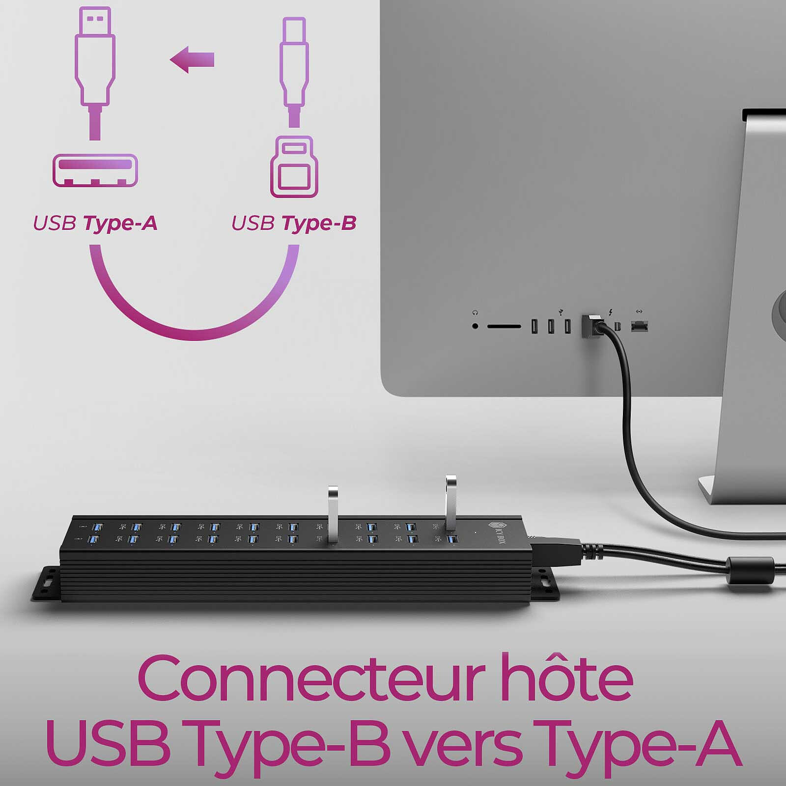 Hub USB a 20 porte con alimentatore e supporto di montaggio