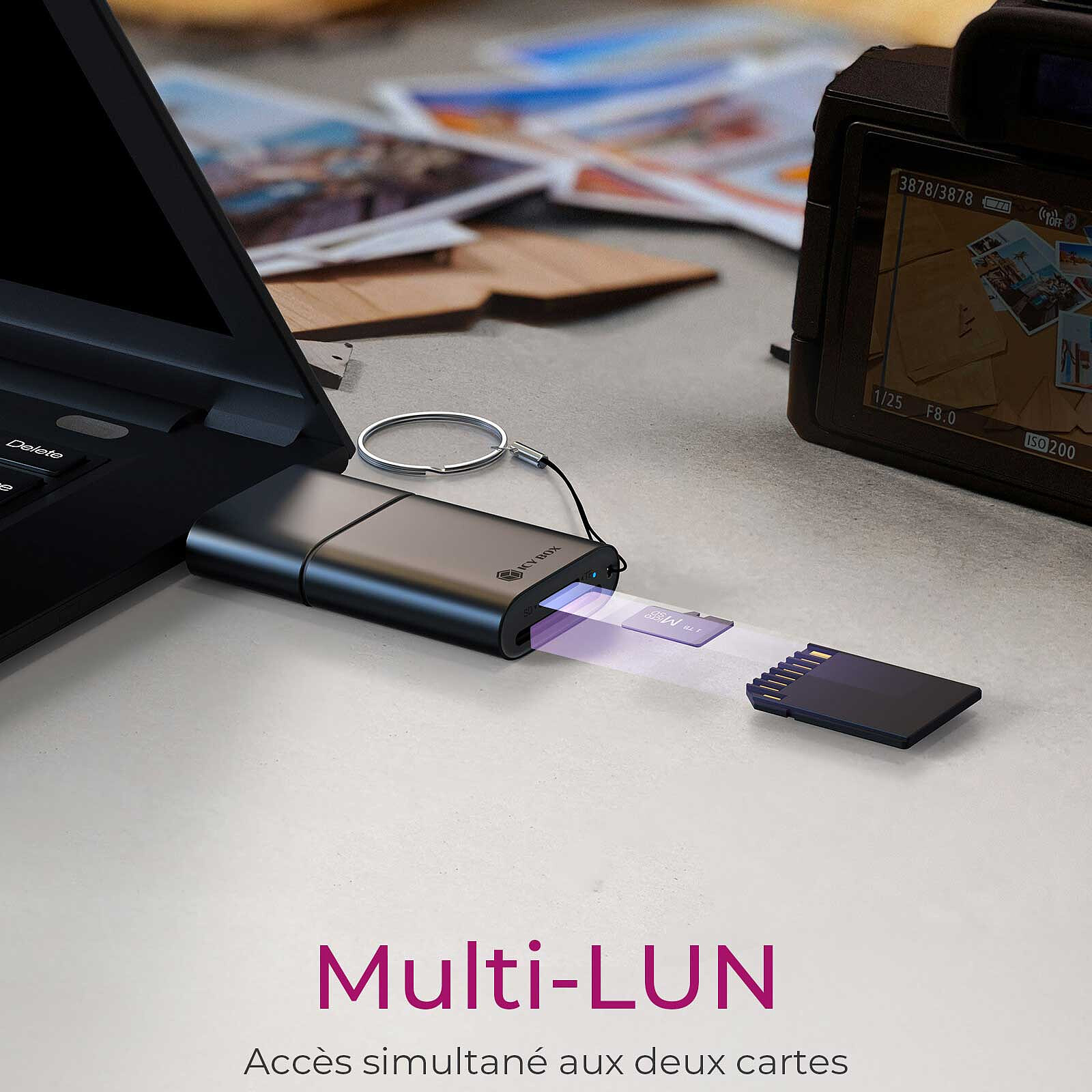 Il lettore di schede di memoria ICY BOX IB-CR204-CU3 semplifica la gestione dei dati grazie al supporto di schede SD e microSD. Ti permette di trasferire facilmente foto da una fotocamera, file da uno smartphone o documenti da altri dispositivi. Inoltre, grazie alla compatibilità con i formati di schede più comuni, non dovrai utilizzare più adattatori, risparmiando tempo e fatica.