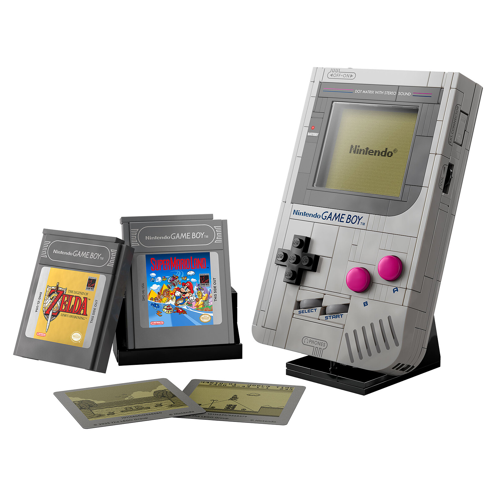 Riscopri l'emozione dei primi giochi per Game Boy con questo set di costruzioni LEGO Super Mario (72046) per adulti. Un grande regalo per gli appassionati di videogiochi Nintendo, questo set da collezione è una replica in mattoncini quasi 1:1 della console Game Boy originale di Nintendo. Premi la croce direzionale, i pulsanti A e B, poi SELEZIONA e AVVIA, proprio come sulla console reale. Altri dettagli iconici del Game Boy sono il controllo del contrasto, la manopola del volume e la porta della cartuccia. Personalizza il tuo modello di Game Boy con le cartucce intercambiabili di The Legend of Zelda: Link's Awakening e Super Mario Land e gli schermi lenticolari corrispondenti (o la schermata iniziale Nintendo). Posiziona la tua creazione sul display costruibile per creare un look retrò. Trovi le istruzioni passo-passo per questo set LEGO Nintendo nella scatola e nell'app LEGO Builder.