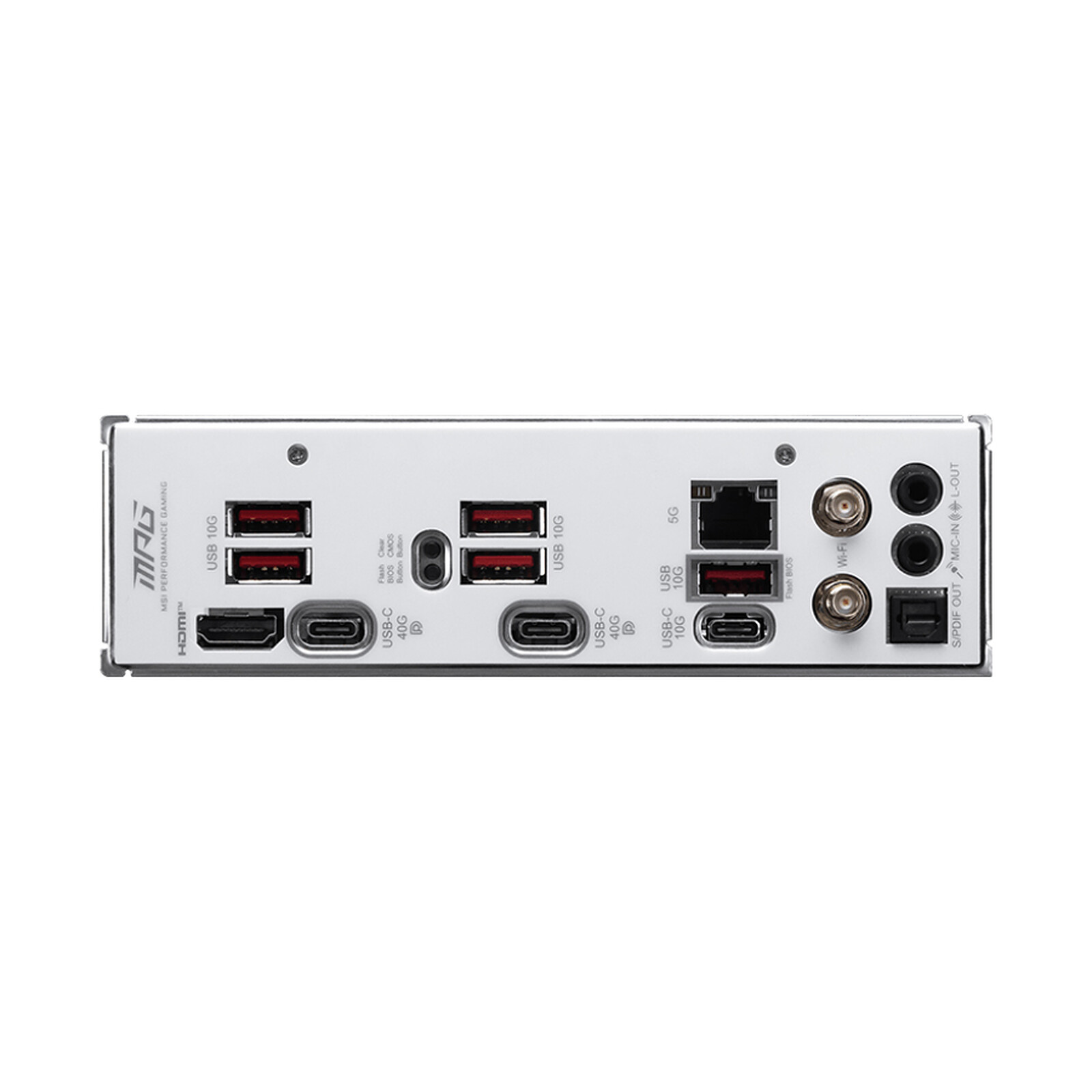 Per quanto riguarda la rete, MSI MPG X870I EDGE TI EVO WIFI vanta una connettività completa con una porta LAN da 5 GbE e Wi-Fi 7 / Bluetooth 5.4 per la connettività wireless. Per il trasferimento dei dati, la scheda madre dispone di due porte USB4 40 Gbps oltre a porte USB 3.1 e 3.2.