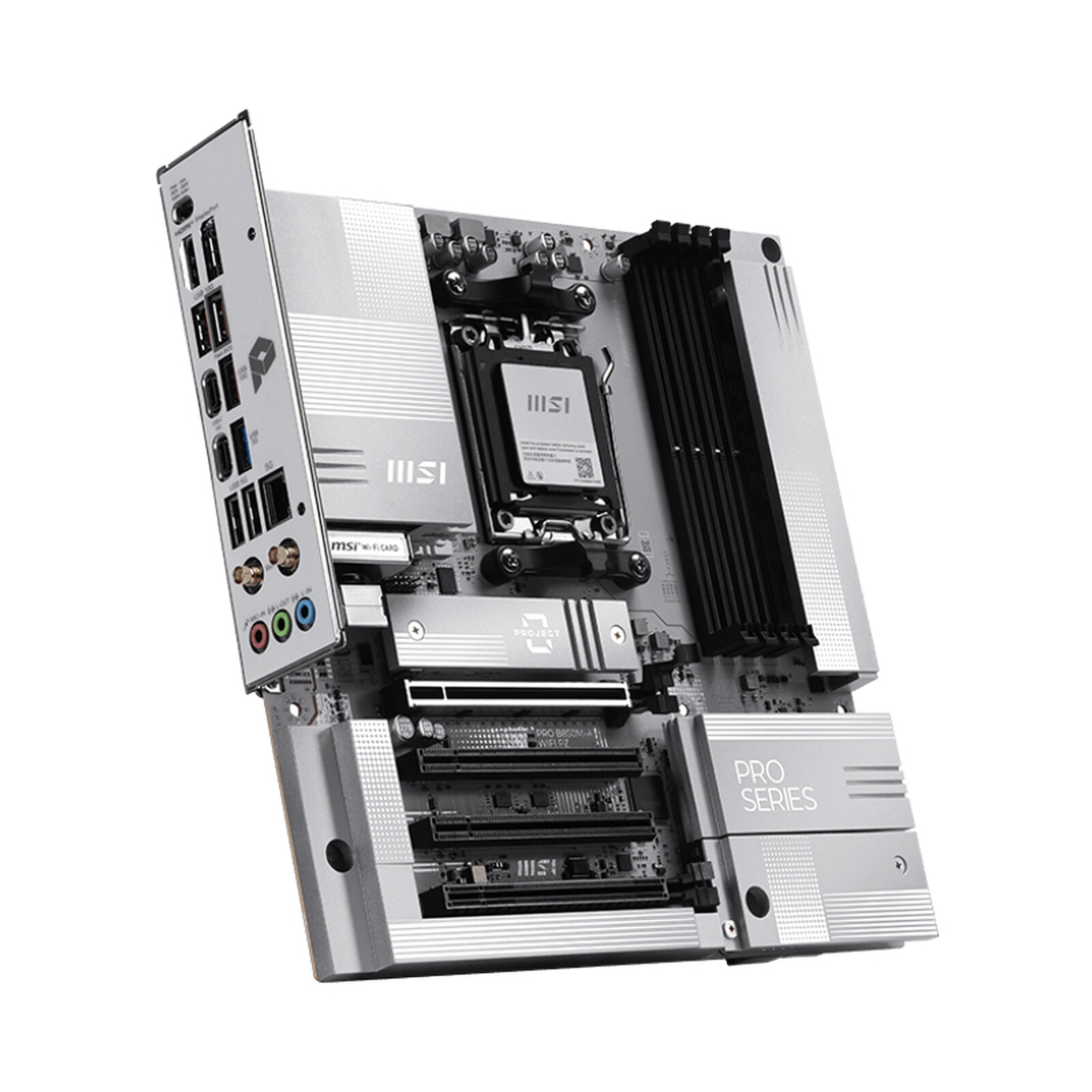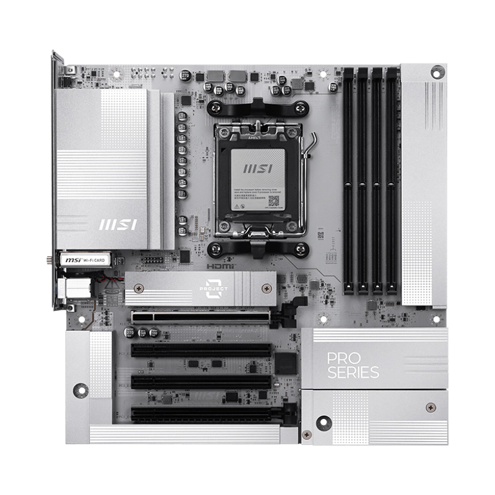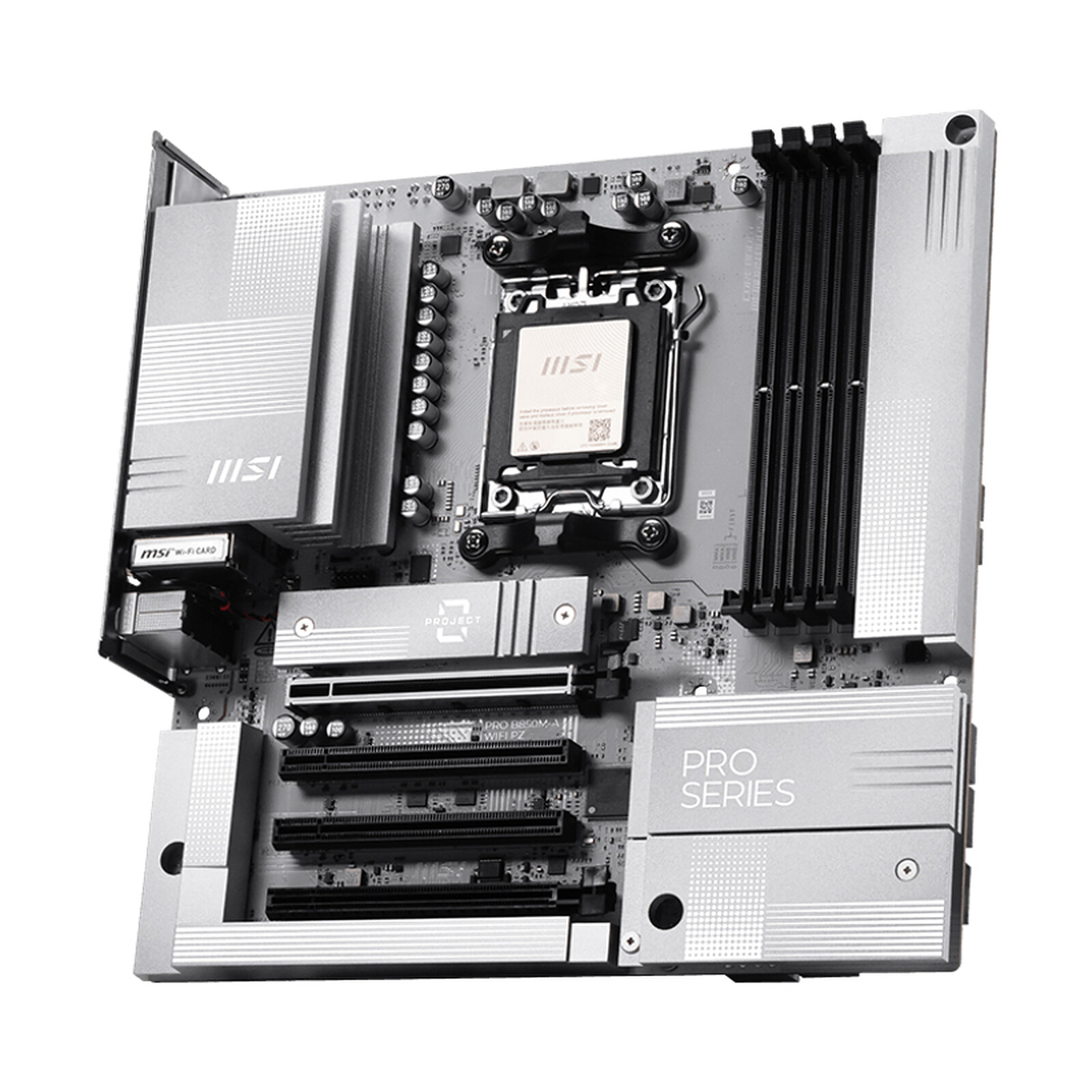 La scheda madre MSI PRO B850M-A WIFI PZ è dotata del chipset AMD B850, che supporta i processori AMD Ryzen su socket AM5, in particolare la serie 7000/8000/9000. Parte della gamma MSI PRO, la B850M-A WIFI PZ sarà il cuore del tuo PC per videogiocatori o della tua workstation grazie al supporto per le schede grafiche e per le unità SSD M.2 NVMe con standard PCI-Express 5.0, pur essendo più conveniente rispetto ai modelli dotati di chipset X870.