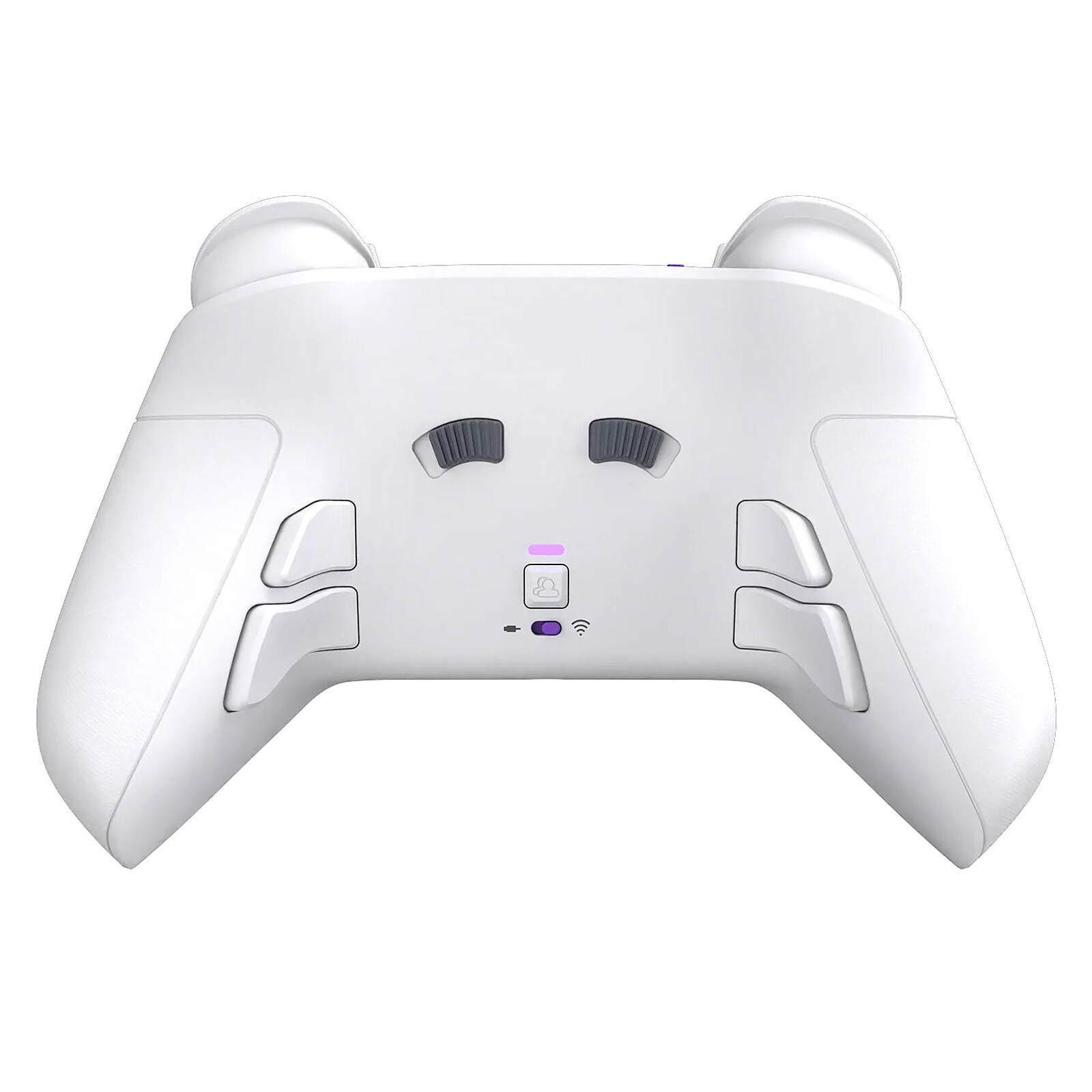 Sul retro, 4 pulsanti mappabili ti permettono di assegnare diverse funzioni in base alle tue esigenze. La connessione avviene in modalità wireless tramite un trasmettitore USB o in modalità cablata grazie al cavo USB-C intrecciato di 3 metri. Una presa da 3,5 mm integrata consente il collegamento di cuffie compatibili.